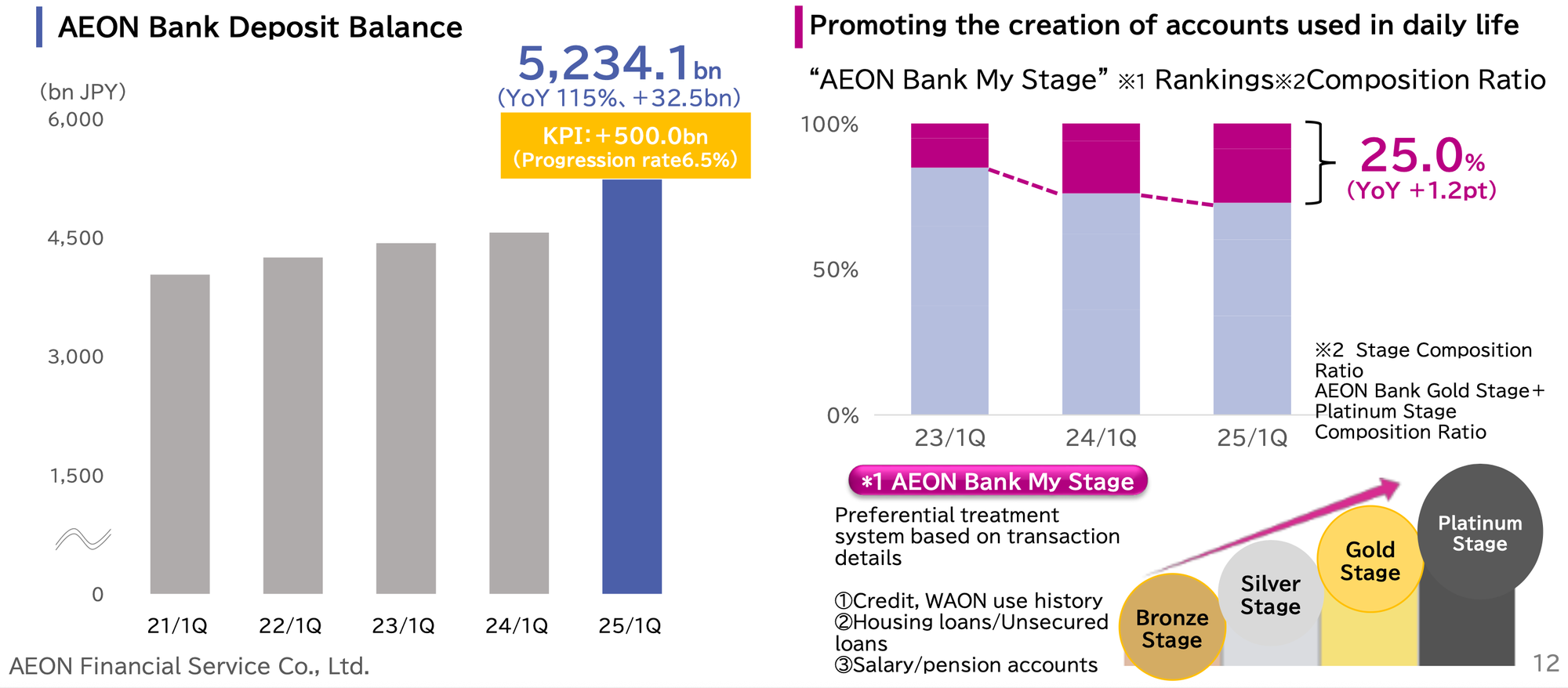 Deposit balances increased 15% year-on-year, driven by strong performance from high-value fixed term retirement savings accounts. "Platinum Stage" and "Gold Stage" accounts - which can be understood to be somewhat equivalent to Rakuten Bank's "primary accounts" - make up 25% of all accounts. These accounts typically receive salary or pension payments, and have an overall transaction volume that is 2x or 3x those of the lower stage accounts.
