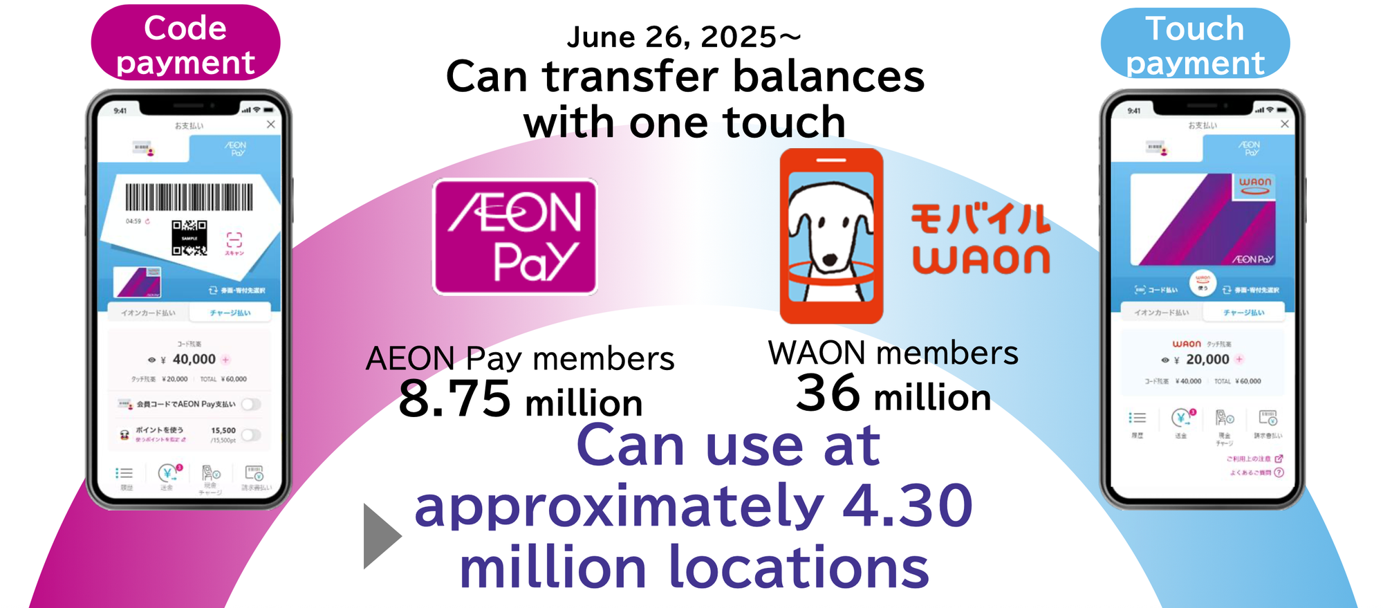 Also, at the end of June, AEON Pay and WAON, AEON Group's reward point system, have been integrated, combining QR code payments and touch payment functionality, respectively.