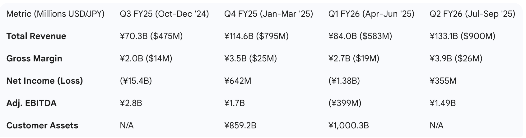 - Top-Line Velocity: Revenue hit ¥383.3 billion ($2.56 billion), a 71% year-over-year increase. This growth was fueled by the "crypto spring" of late 2024.