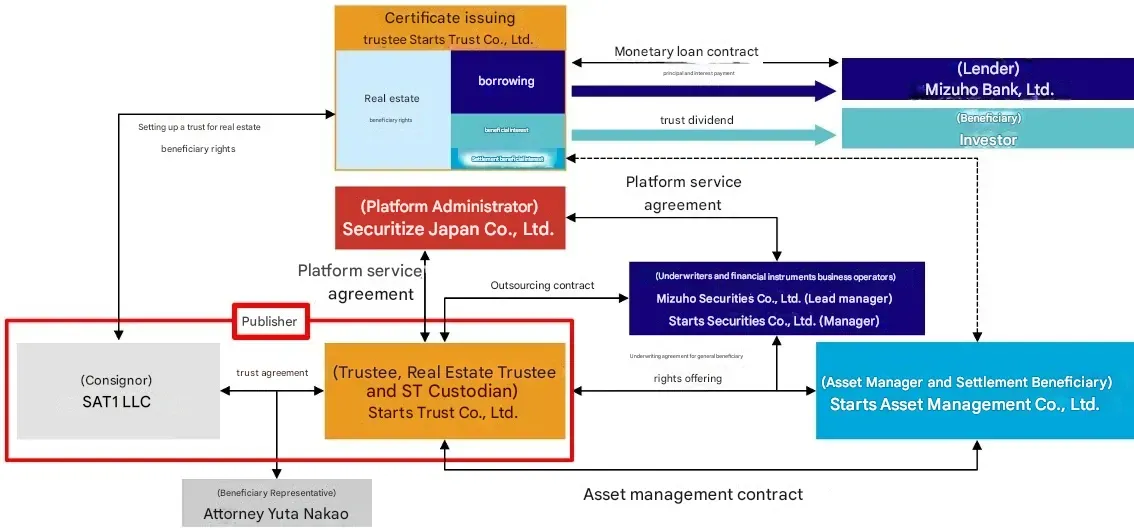 Starts Group is a comprehensive lifestyle culture enterprise with a wide range of businesses centered on construction and real estate. Since the enforcement of the "Act on Securitization of Assets" in 1998, Starts Group has been engaged in various real estate securitization businesses for a quarter of a century. For this ST structure, the group will combine the knowledge cultivated through various real estate securitization businesses: Starts Asset Management will serve as the asset manager, Starts Trust as the issuer (trustee), and Starts Securities as the underwriter and handling financial instruments business operator. Through high-quality real estate security token products leveraging both real estate and financial expertise with close and flexible group collaboration, Starts Group will provide diverse investors with opportunities and options for real estate investment, contributing to the growth and vitalization of the security token market.