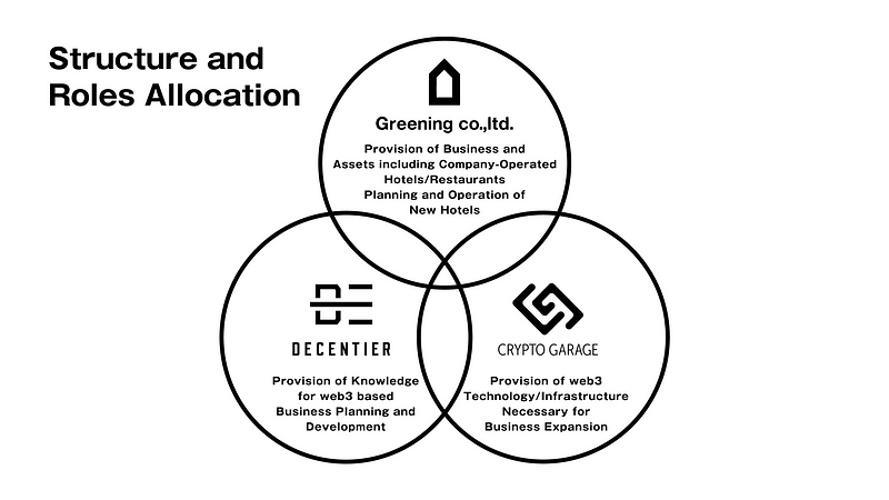 Crypto Garage, GREENING, and Decentier have reached a basic agreement on a business alliance. The 3 companies will plan and develop a platform for time-share real estate sales to create new lifestyles through the easy ownership/use of a wide variety of real estate. The ownership/use rights of the subject property will be converted to tokens as Real-World Assets (RWA), potentially improving liquidity and enhancing the property’s assets.