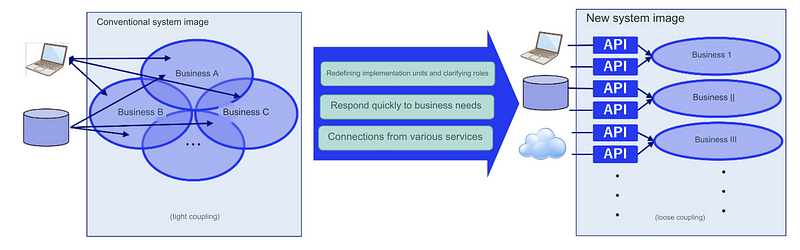 The new system redefines application implementation units to clarify the role of each function and provide APIs accordingly. This facilitates connections from a variety of services, allowing each function to be utilized as a component for agile responses to business needs.