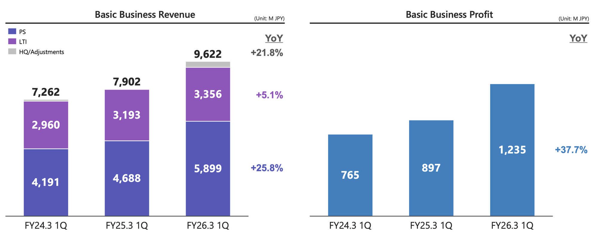 The strength of the core business is further reflected in its top-line performance. Basic Business Revenue grew a robust 21.8% YoY to ¥9,622 million, driven primarily by the PS segment's 25.8% expansion. This strong, recurring revenue growth is a key positive indicator for the underlying business.