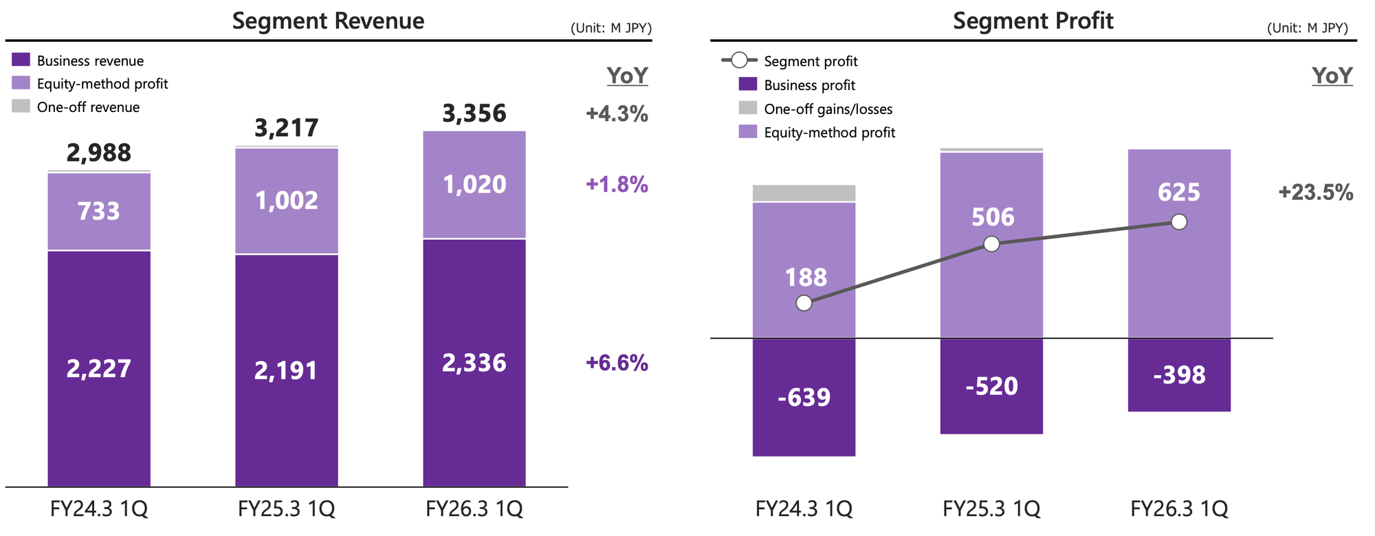 However, the company deliberately provides metrics for its "Basic Business," which excludes the investment-related activities of the GII segment and other one-time items. These figures tell a dramatically different story. Basic Business Profit surged by 37.7% YoY to ¥1,235 million, demonstrating that the fundamental operational health of the company remains strong and is, in fact, accelerating.The GII segment alone accounted for a negative PBT swing of ¥6,159 million (from a ¥3,542 million profit in 1Q FY25.3 to a -¥2,617 million loss in 1Q FY26.3), more than explaining the entirety of the consolidated PBT decline.This isolates the source of the loss squarely within the non-operational investment arm.