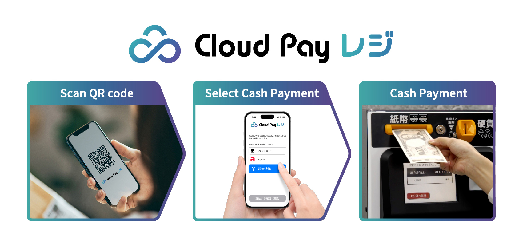 With this collaboration, users will be able to use their own smartphones to scan “Cloud Pay REGI” QR codes displayed in stores and on online screens, etc., and select either “cashless” or “cash” as their payment method. Cashless payments are completed entirely on the user’s smartphone, eliminating the need for a dedicated payment terminal or cash register. When users select cash, “ARUNAS AES-CUT” can still be used for cash payments using payment machines.