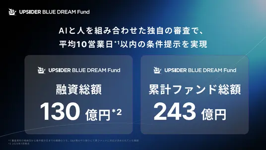 "UPSIDER BLUE DREAM Fund" uses AI to predict cash flow based on real-time deposit/withdrawal data from banking APIs, providing term sheets within an average of 10 business days. This achieves both the speed and precision that traditional reviews found difficult, significantly improving the fundraising environment for growth companies.