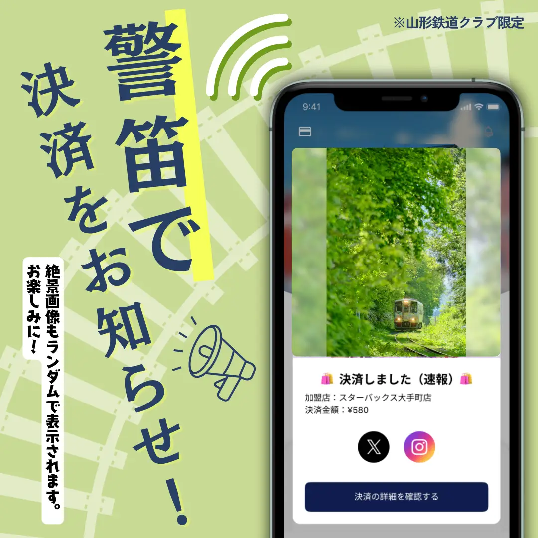 For the "Yamagata Railway Card," a credit card designed after the Yamagata Railway Flower Nagai Line and aimed at railway enthusiasts, payment notifications feature a train whistle sound. Along with the audio, scenic photographs of railway heritage sites and seasonal landscapes along the railway line are randomly displayed.