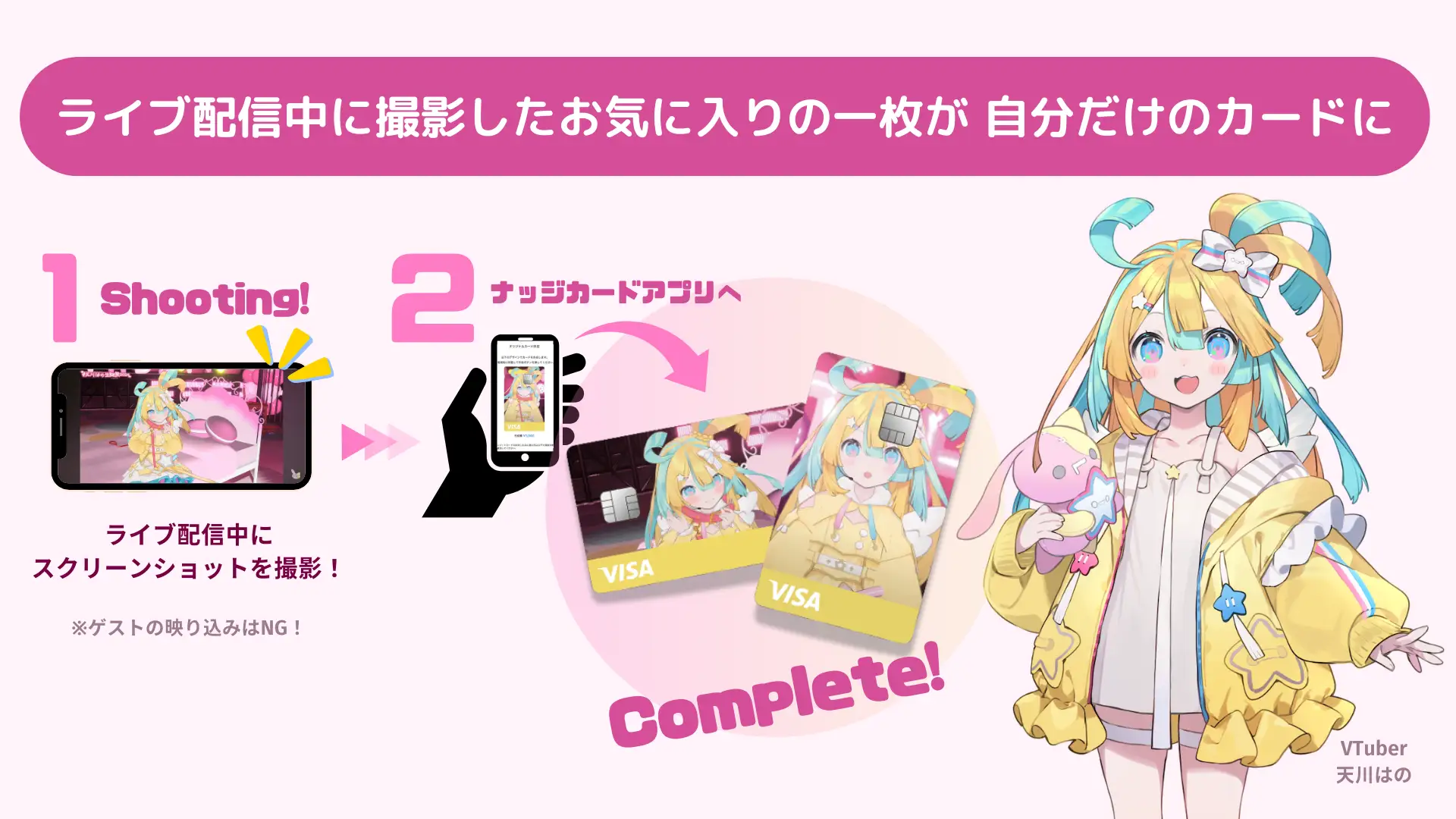 With VTuber Hano Amakawa, Nudge held the world's first YouTube live-linked card issuance event. Users could capture screenshots during the live broadcast and use them directly as card designs, creating major excitement.