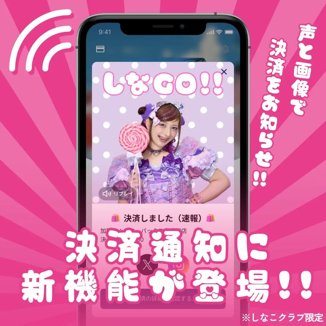 For the official card of "Shinako," a popular Harajuku-style creator particularly popular with Gen Z, payment notifications featuring Shinako's signature phrase "Shinago!" have been introduced. Accompanying the audio, 26 types of exclusive images viewable nowhere else are randomly displayed.