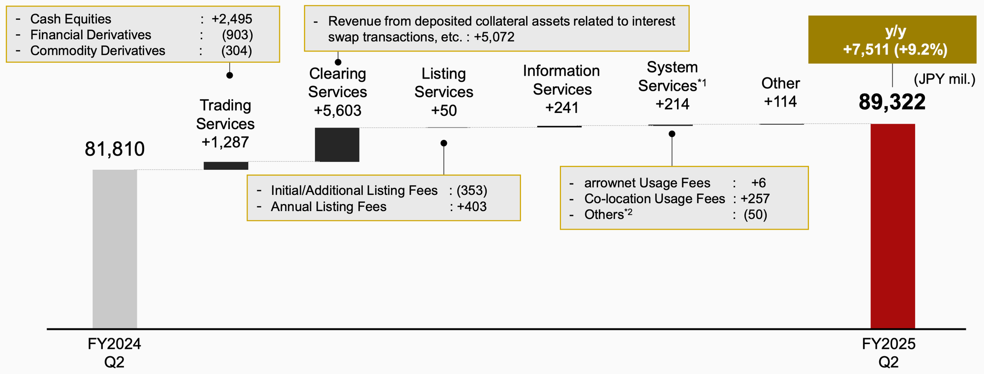 Japan Exchange Group (JPX) reported solid financial results for the first half of fiscal year 2025 (FY2025 Q2 cumulative), driven primarily by increased activity in cash equities and a significant contribution from interest rate-related collateral management within clearing services.