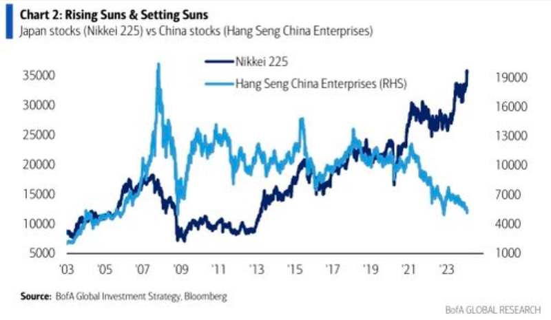 Our thanks go to Harald Berlinicke for pointing out some interesting market commentary and context on Japanese stocks in the latest Bank of America research piece “The Flow Show: Rising Suns & Setting Suns”, published on January 18, 2024, and delivering the quote of the week: