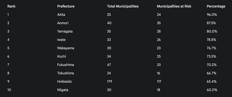The data paints a stark picture for Akita Prefecture, where every municipality except for Akita City is grappling with a drastic decrease in its young female population. The analysis reveals seven prefectures where over 70% of municipalities are labeled as “at risk of extinction.” These are Akita, Aomori, Yamagata, Iwate, Wakayama, Kochi, and Fukushima prefectures, indicating a widespread crisis across the Tohoku region, with the exception of Miyagi Prefecture.