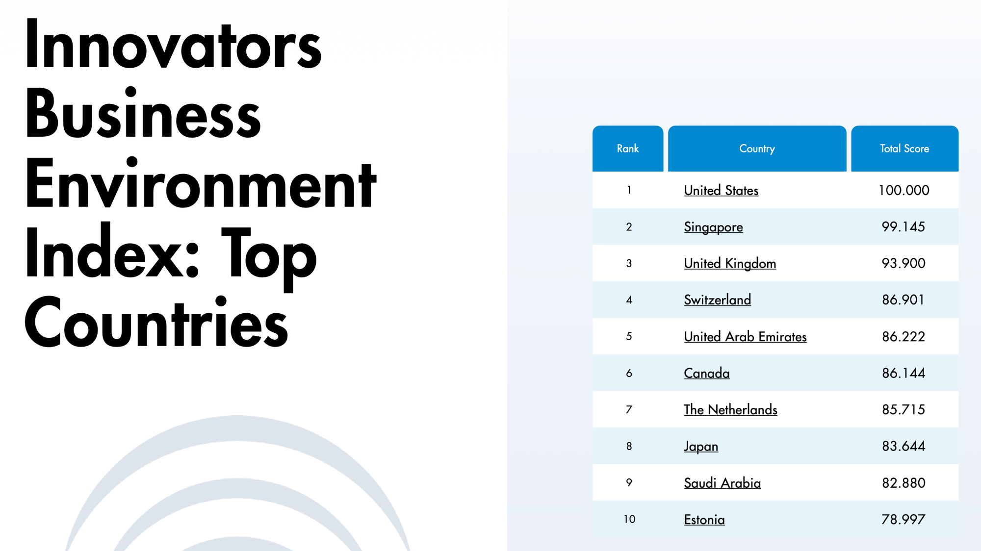- Global Elite: Japan's 8th place global ranking solidifies its status as one of the world's most attractive business environments for innovators.