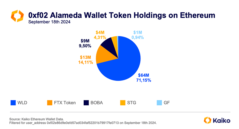 As of September 18, Alameda’s wallet still holds $64M in WLD. Selling these could heavily impact prices, which are already down 30% since the July 24 token unlock. Other major holdings include several small, illiquid tokens like FTX’s FTT ($13M) and Bona Network’s BOBA ($9M) tokens, which together have a 1% market depth of only $0.7M daily