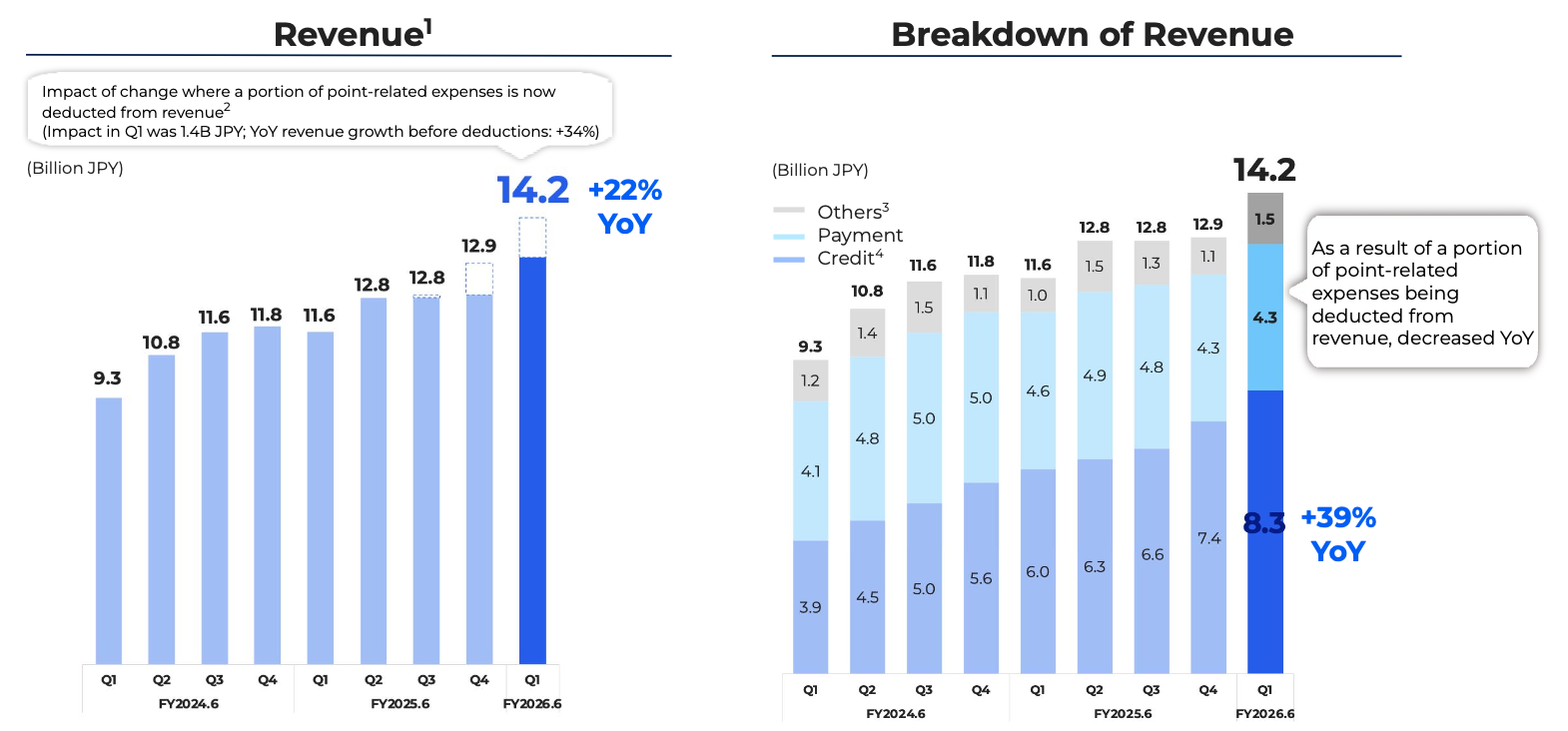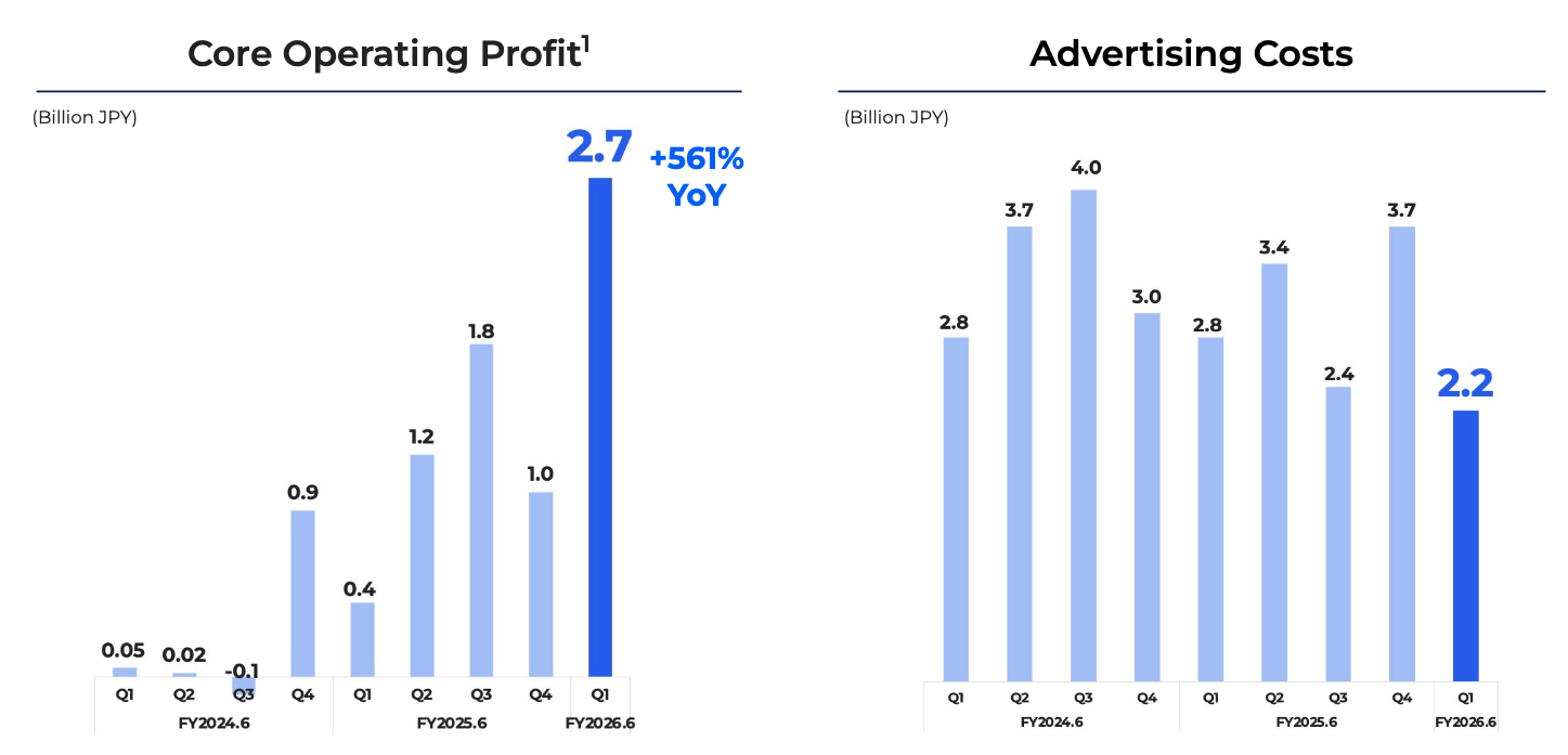 Core operating profit was the highest amount to date, led by favorable revenue growth. Compared to FY2025.6 Q4, in which Mercari strengthened investments to acquire cardholders alongside the launch of Mercard Gold, advertising costs decreased QoQ, but Mercari plans to strengthen growth investment in Q2 and beyond.
