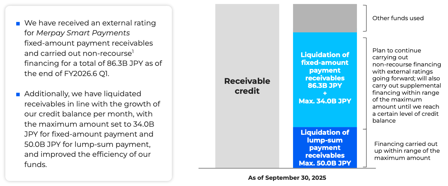 Mercari plans to expand and diversify financing in sync with the growth of its credit services centered on non-recourse receivable liquidation, in which financing is based on confidence in the actual credit receivable for Merpay Smart Payments