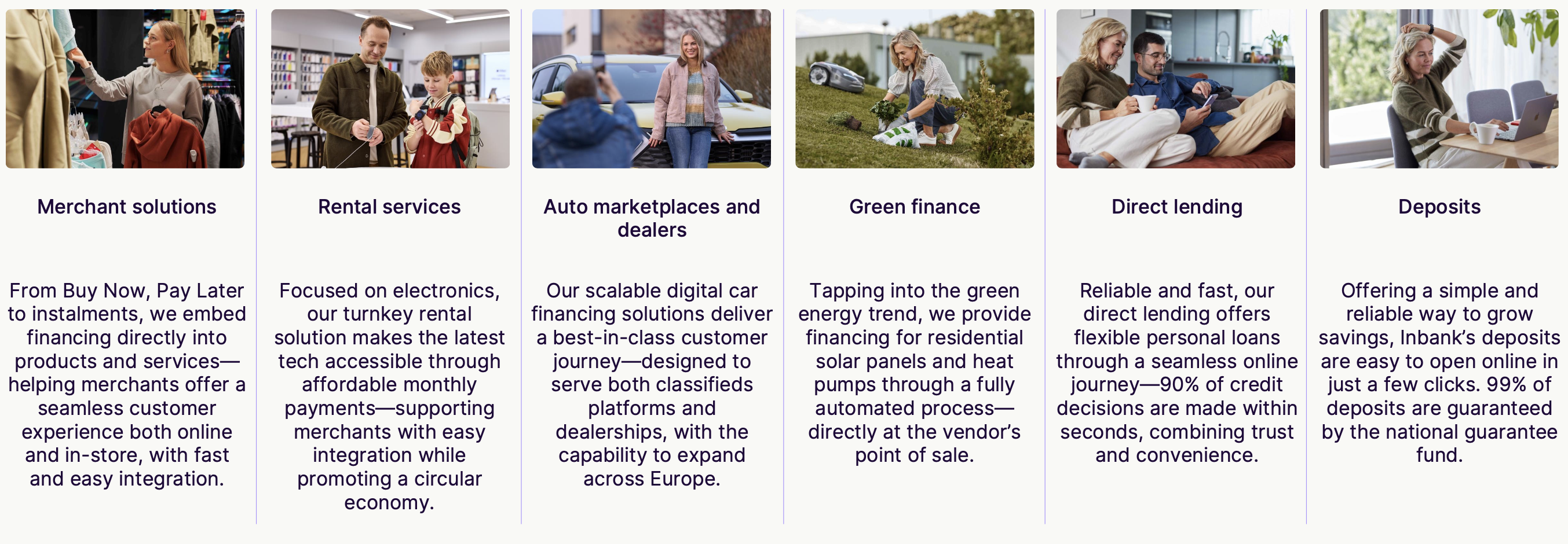 The product portfolio is diversified across several key verticals to mitigate risk and capture different segments of consumer spending. The largest segment remains "Merchant Solutions," encompassing Buy Now, Pay Later (BNPL) and point-of-sale financing. This vertical generated sales of 68.1 million euros in Q3 2025, growing 13% year-on-year.