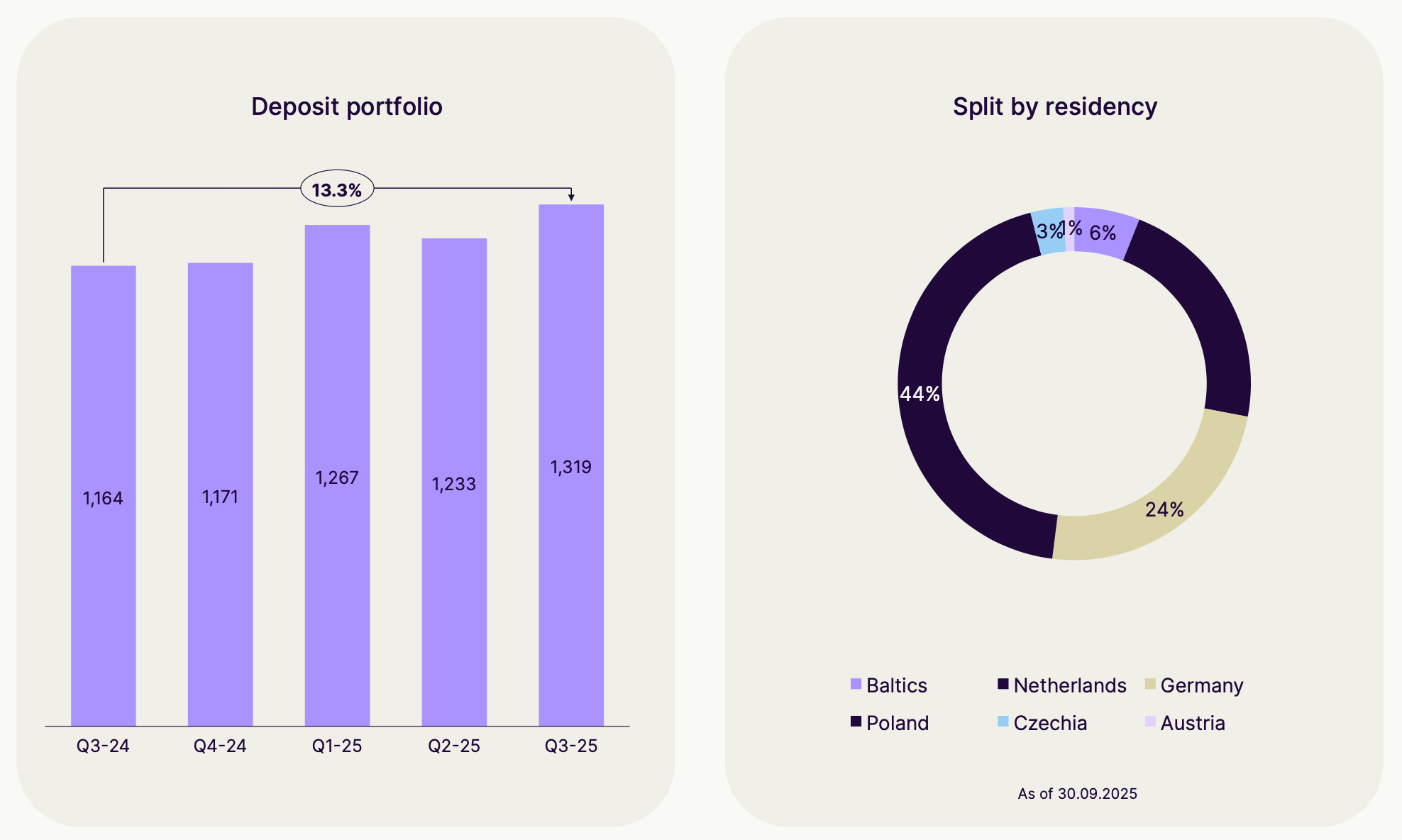 Inbank has a highly diversified funding base of nearly 120,000 depositors. Inbank accepts term deposits from private individuals in Estonia, Lithuania, Poland, Czechia, Germany, Austria, and the Netherlands, and has accumulated a deposit portfolio of 1.3 billion euros. 99% of these deposits are covered by the Estonian Guarantee Fund.