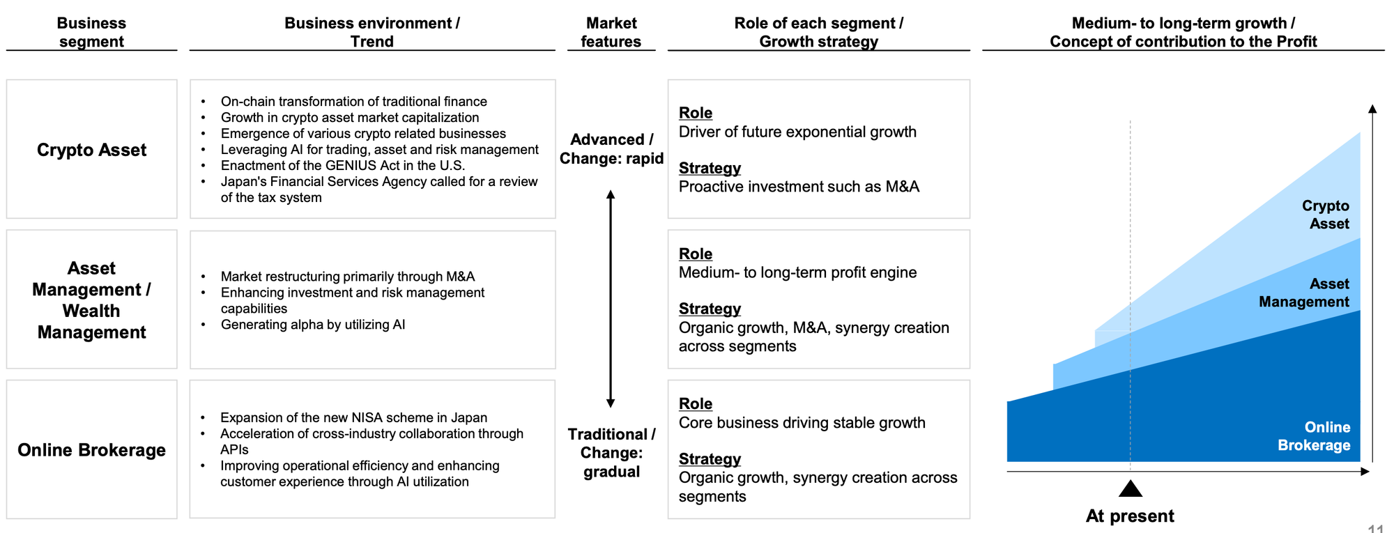 Ultimately, Monex Group's strategic direction is clear and consistent. The company reaffirms its commitment to achieving an ROE target of 15%. This will be accomplished by continuing to leverage the stable, cash-generative brokerage business to fund strategic expansion in the high-growth Asset Management and Crypto Asset segments. This growth will be pursued through a disciplined combination of organic initiatives and strategic M&A, ensuring the Group remains agile and well-positioned to create sustainable long-term value for its shareholders.