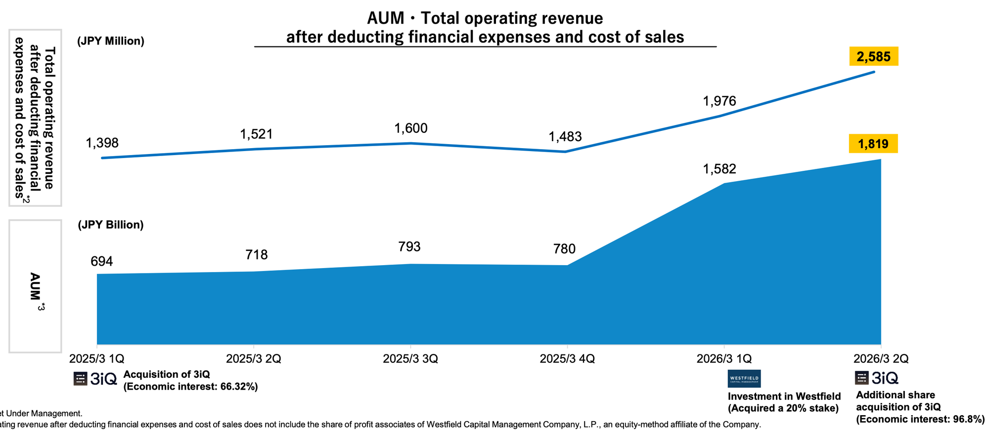 Despite a strong operating income of JPY 795 million, the segment's net income attributable to owners was JPY 73 million. This difference is attributable to specific, non-cash accounting impacts related to the investment in Westfield Capital Management: