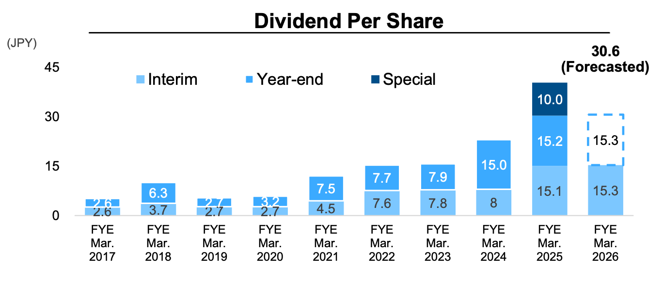 - This represents a tangible increase in the ordinary dividend. Excluding the prior period's special dividend of JPY 10, the ordinary dividend has increased by JPY 0.1 per share from JPY 15.2, signaling a consistent commitment to growing shareholder distributions.