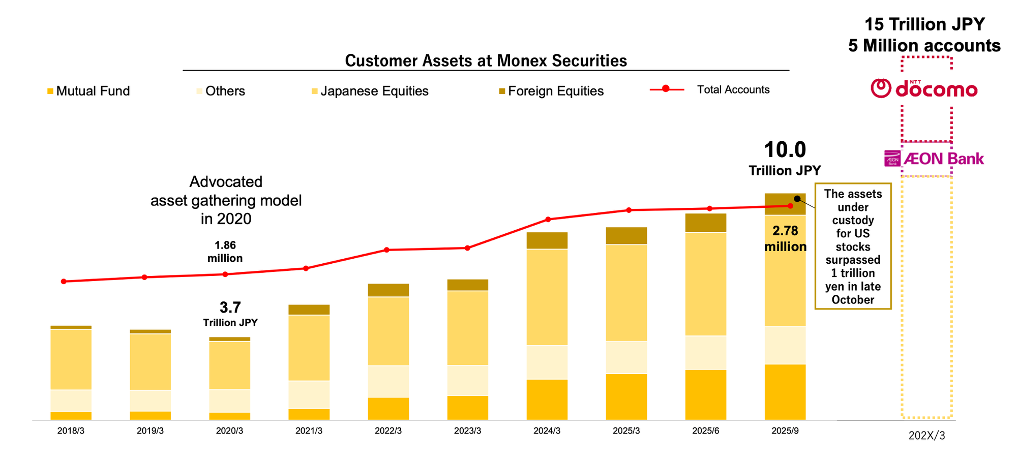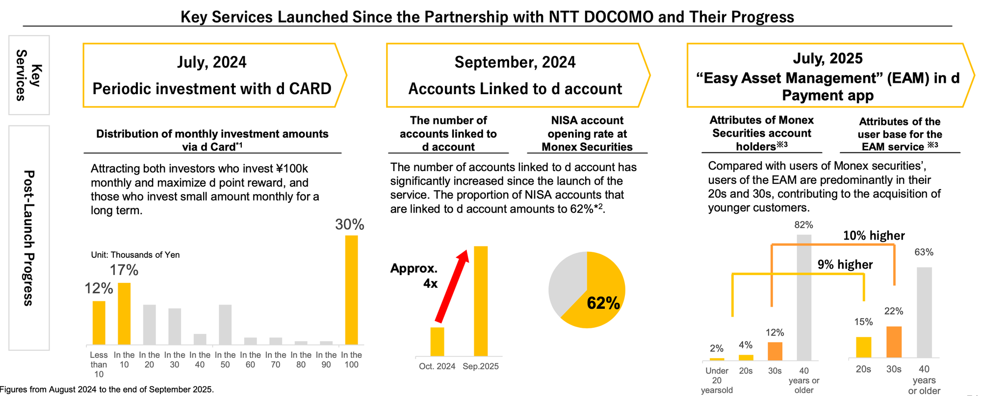 - The number of Monex Securities accounts linked to a "d Account" grew approximately 4-fold between October 2024 and September 2025.