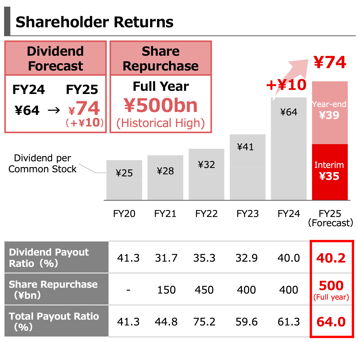 - Share Repurchase Program: A new ¥250 billion share buyback was announced for the second half of the year. This brings the full-year total repurchase program to a historical high of ¥500 billion.