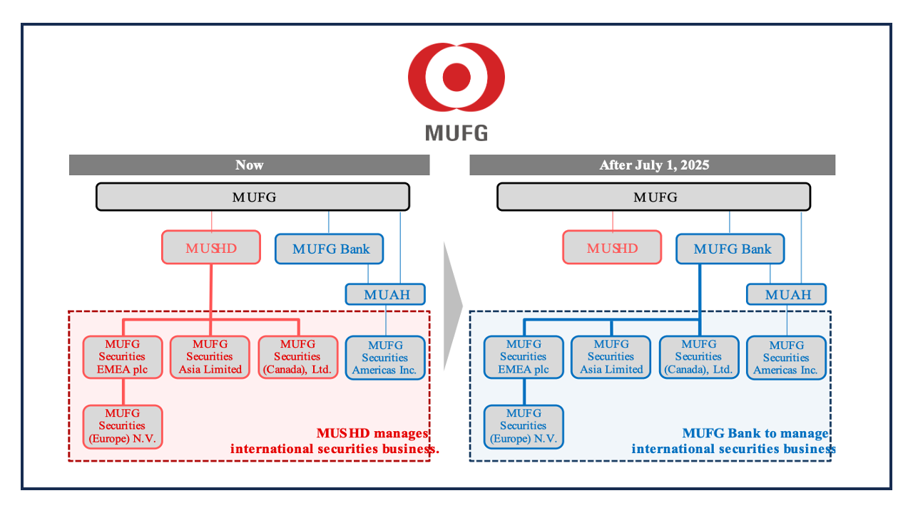 MUFG has formally announced plans to merge these two entities. MUFG Securities (Europe) N.V. will be absorbed into MUFG Bank (Europe) N.V., with the latter being the surviving legal entity.