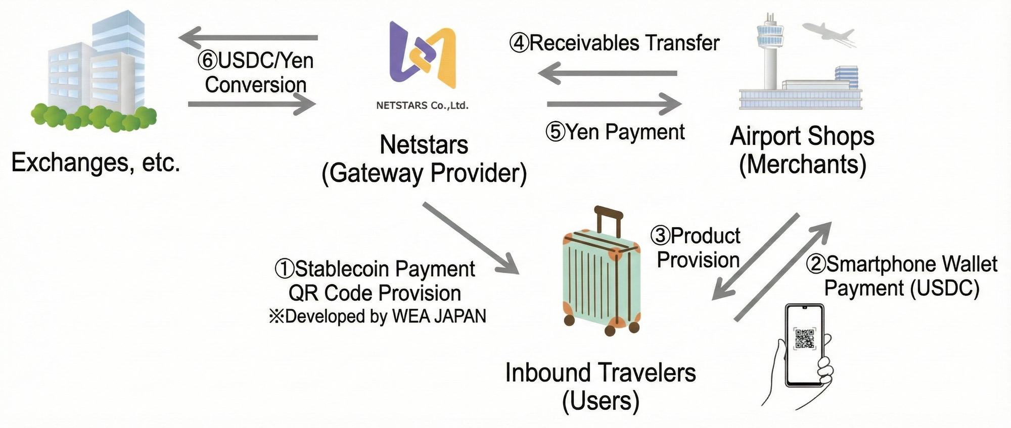 To address this, NETSTARS is integrating USDC acceptance into its flagship "StarPay" multi-payment gateway. The system utilizes technology developed by partner WEA JAPAN to generate payment-specific QR codes.