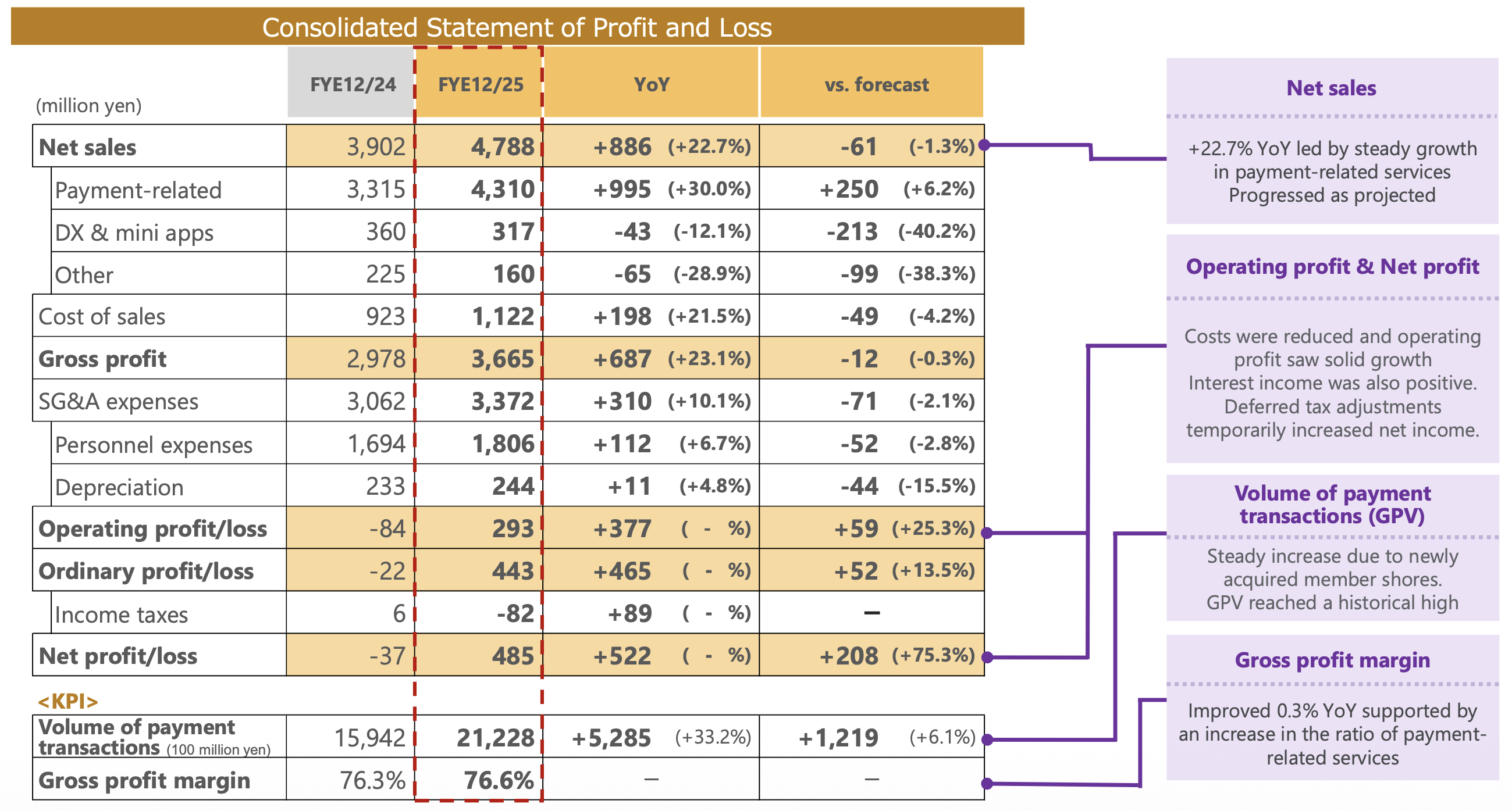 “We achieved our first full-year of profitability since our public listing,” the company stated in its presentation. “GPV growth exceeded the forecast, and as a first step toward building a high-profit business structure, we achieved full-year profitability.”