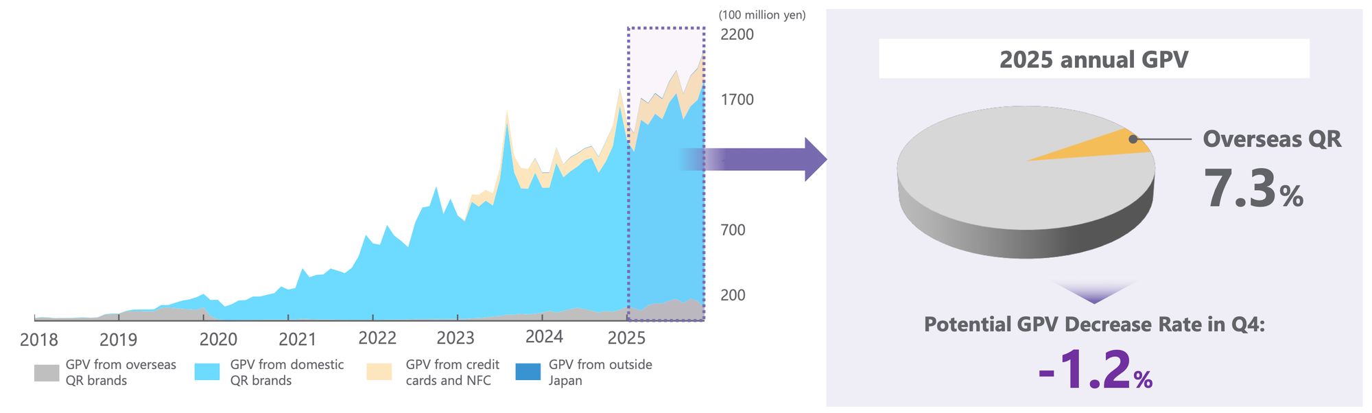 In Q4, the potential GPV impact from reduced flights between Japan and China was estimated at a negative 1.2%. Chinese-origin payment services saw a decline of approximately 20%. However, this was entirely eclipsed by domestic demand. Domestic QR brands and credit card usage surged, proving that NetStars is no longer solely dependent on inbound tourism but has become a critical infrastructure player for Japanese domestic consumption.