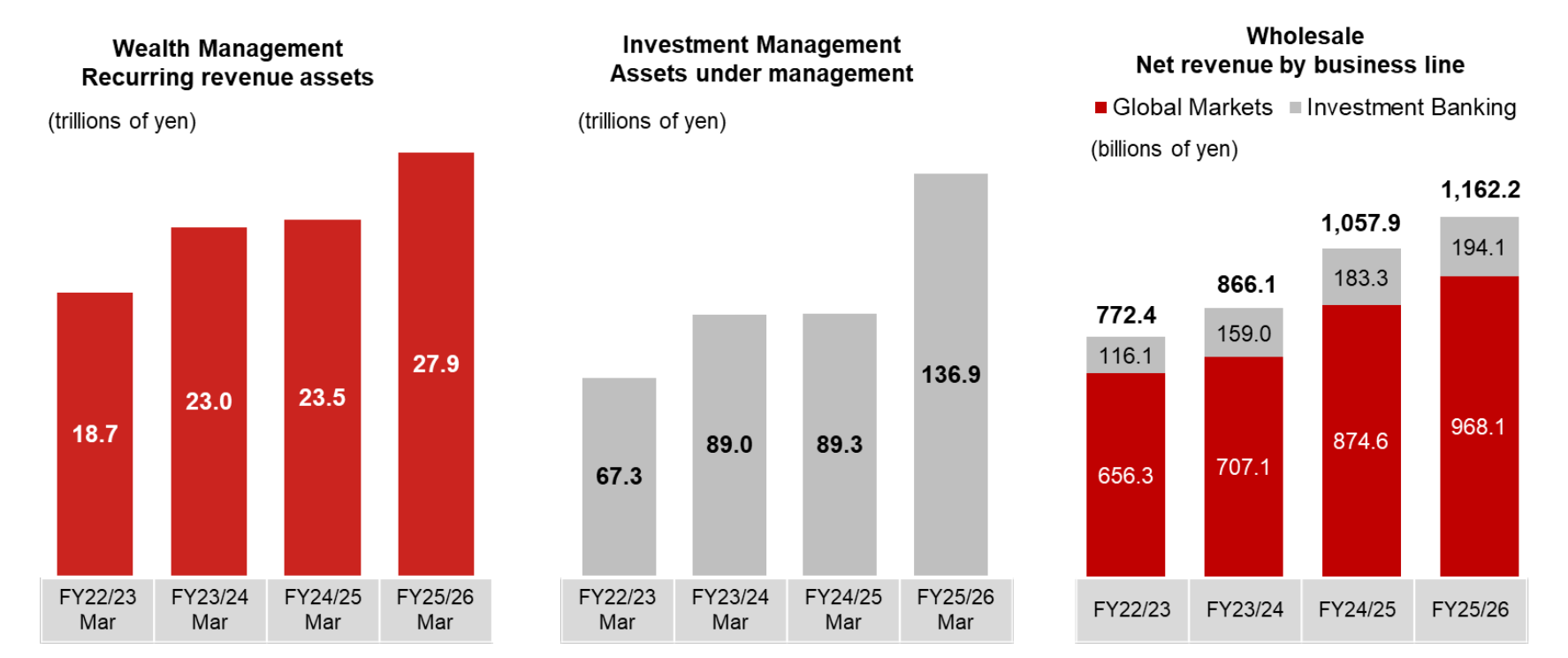 - Wealth Management: A standout performer, this segment saw pre-tax income climb 22.8% to 204.0 billion yen. Strong client engagement and asset accumulation drove net revenue up 12.5% to 487.9 billion yen, benefiting from a favorable interest rate environment and renewed retail activity.