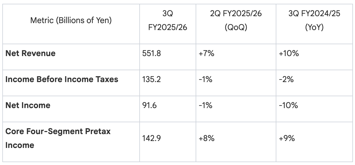CEO Kentaro Okuda has appropriately framed these results as the fruit of a deliberate "Structural Transformation." While consolidated pretax income saw a marginal 1% sequential decline due to losses in the "Other" segment—specifically stemming from weaker market conditions in digital asset-related businesses—the record performance in core segments confirms that the business model reforms are de-risking the group. The current earnings profile is increasingly defined by sustainable, recurring revenue streams rather than "one-off market factors," marking a transition into a more durable phase of growth.