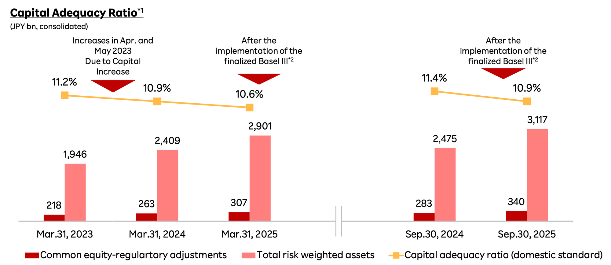 - Capital Adequacy: The consolidated capital adequacy ratio (domestic standard) was 10.9% as of September 30, 2025, which the bank describes as a "sound level."