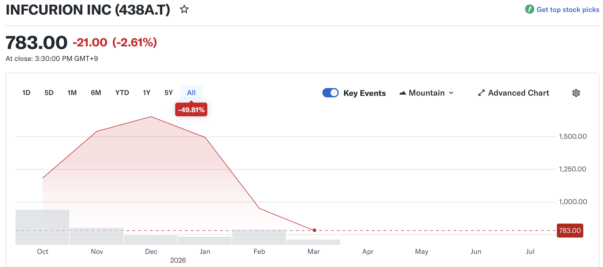 Infcurion's stock price performance since its October 2025 IPO.