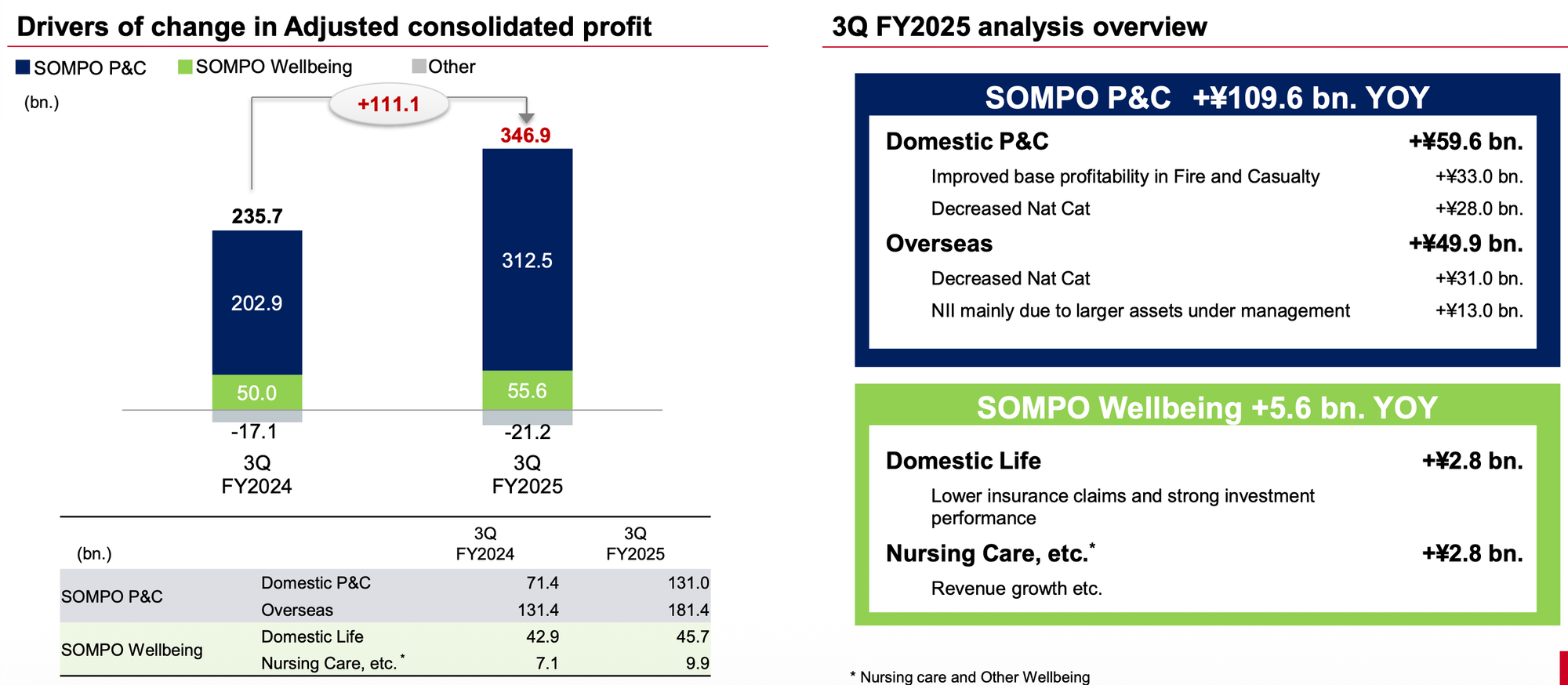 Sompo Holdings delivered a robust set of third-quarter results for fiscal year 2025, posting a sharp increase in profitability driven by improved underwriting margins in its domestic property and casualty (P&C) business and sustained growth in overseas operations.
