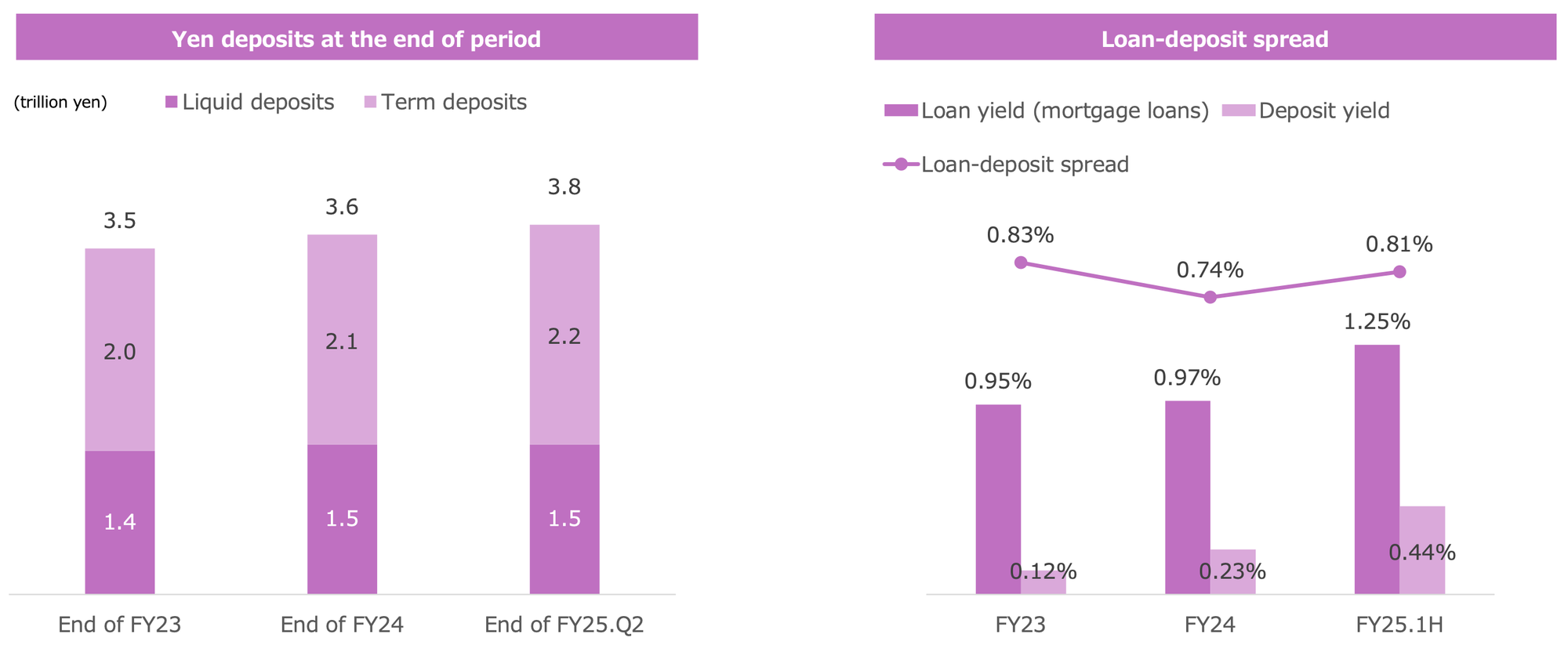 In contrast, yen deposit balances expanded steadily despite intensifying competition. To proactively manage profitability in this new rate environment, the bank is widening the loan-deposit spread by strategically increasing mortgage loan rates, ensuring continued margin security.