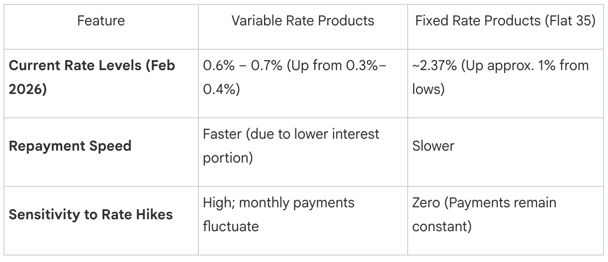 The Japanese mortgage market is undergoing a structural pivot as the era of ultra-low interest rates yields to normalization. Floating-rate (variable) products continue to dominate the landscape, capturing approximately 84% of new originations. However, the velocity of change is increasing; while variable rates previously sat at a floor of 0.3%–0.4% during the negative interest rate era, current minimums have migrated toward the 0.6%–0.7% range. This shift is accompanied by a significant institutional bifurcation: digital banks and regional banks (particularly those in Kyushu and southern Japan) have spearheaded the move toward 50-year loan terms to preserve affordability. In contrast, mega banks have remained the conservative holdouts, generally maintaining traditional 35-to-40-year ceilings. These innovations are survival mechanisms triggered by a widening chasm between property valuations and stagnant nominal wages.