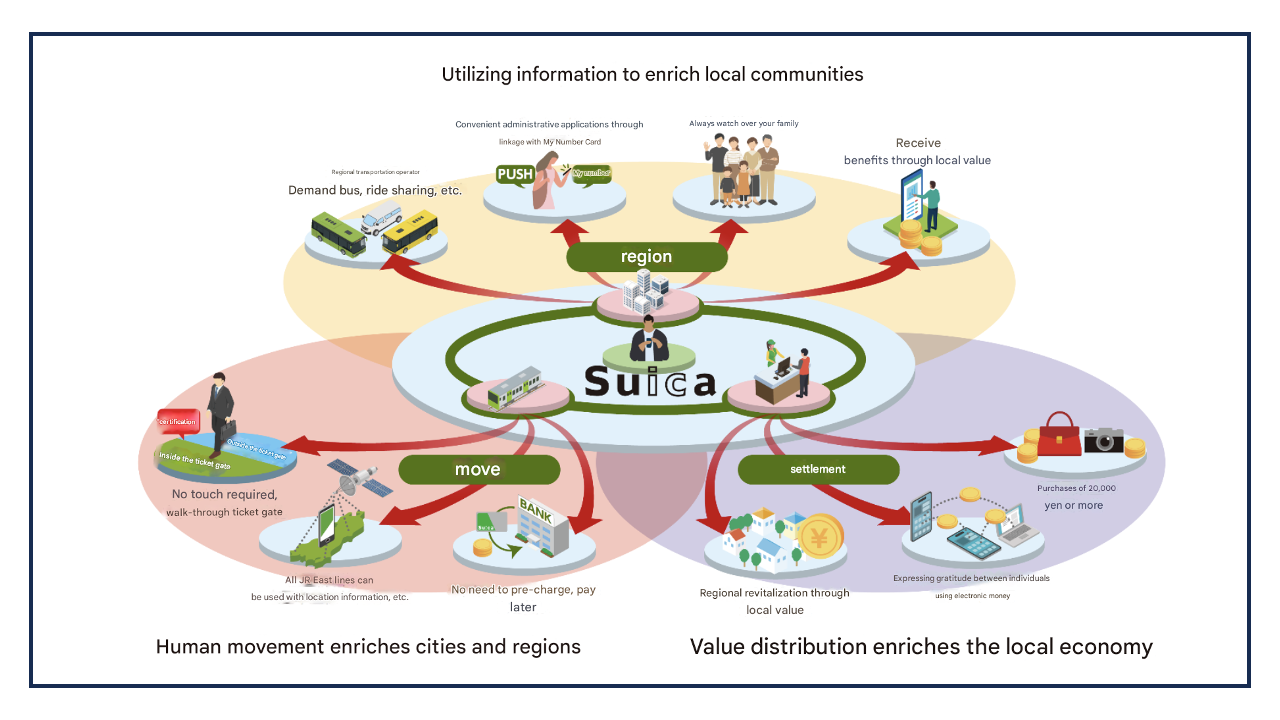 - JR East Group, through "Suica Renaissance" announced last December, is evolving Suica from a "device for transportation and small payments" into a "device for daily life" that connects with customers' and communities' various lifestyles.