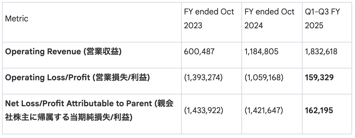 The data speaks for itself. FUNDINNO achieved 97.3% revenue growth in Fiscal Year 2024, driven by the successful scaling of the FUNDINNO PLUS+ service. Most importantly, the first three quarters of Fiscal Year 2025 mark a turn to an operating profit of 159.3 million JPY, a landmark achievement that validates FUNDINNO's investment strategy and demonstrates the powerful operating leverage inherent in the business model.
